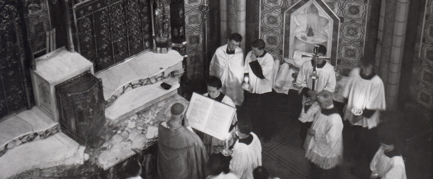 What follows is a very brief general outline of the rite of consecration as it would have been celebrated in the 1940s. The rite was revised and simplified in 1961 and again in 1977 and is now referred to as a rite of dedication.